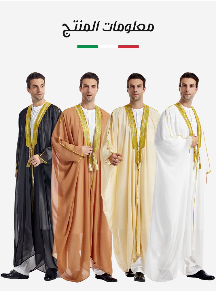 جلابية رجالي فاخر أنيق ومطرز بطباعة ذهبية